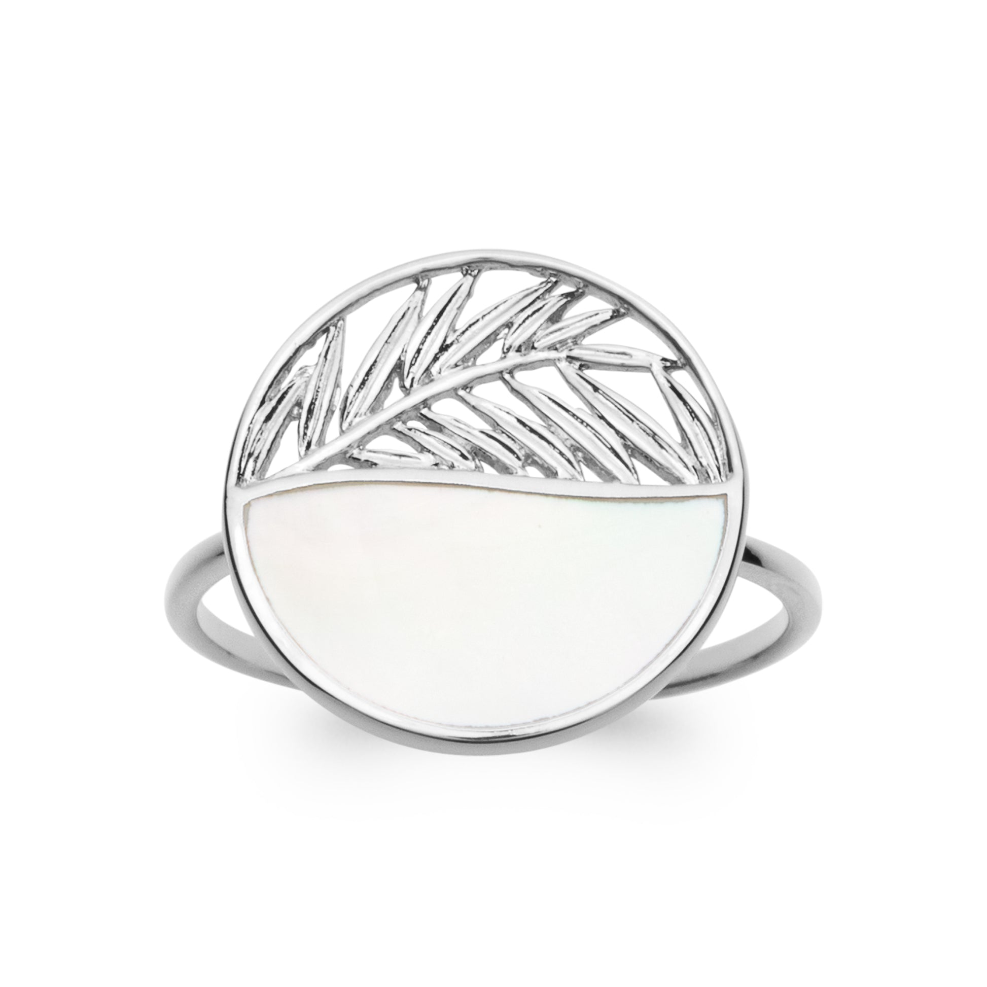 Bijou feuille argent 925 rhodié et pierre naturelle de nacre