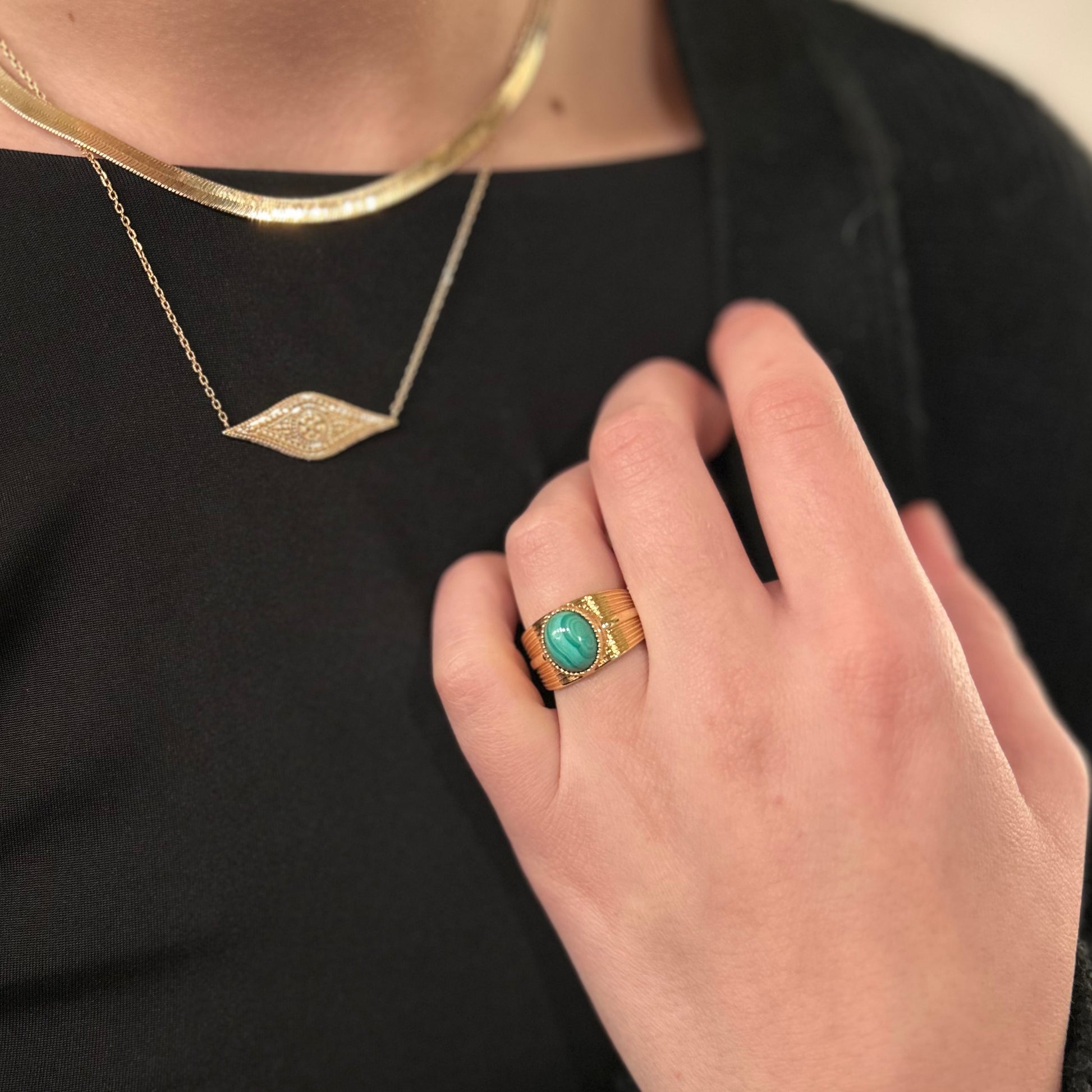Bijou plaqué or 750 5mic et pierre naturelle de malachite