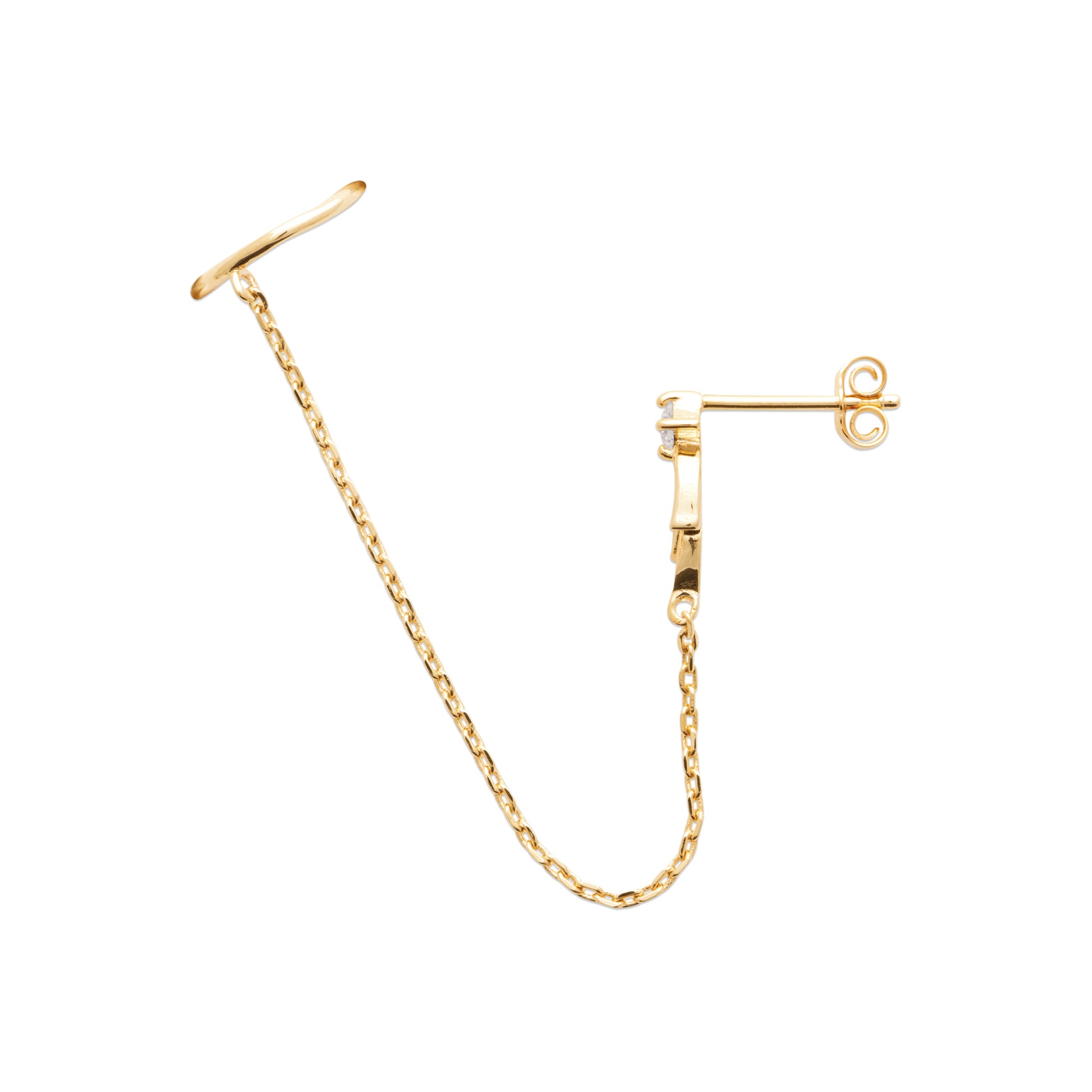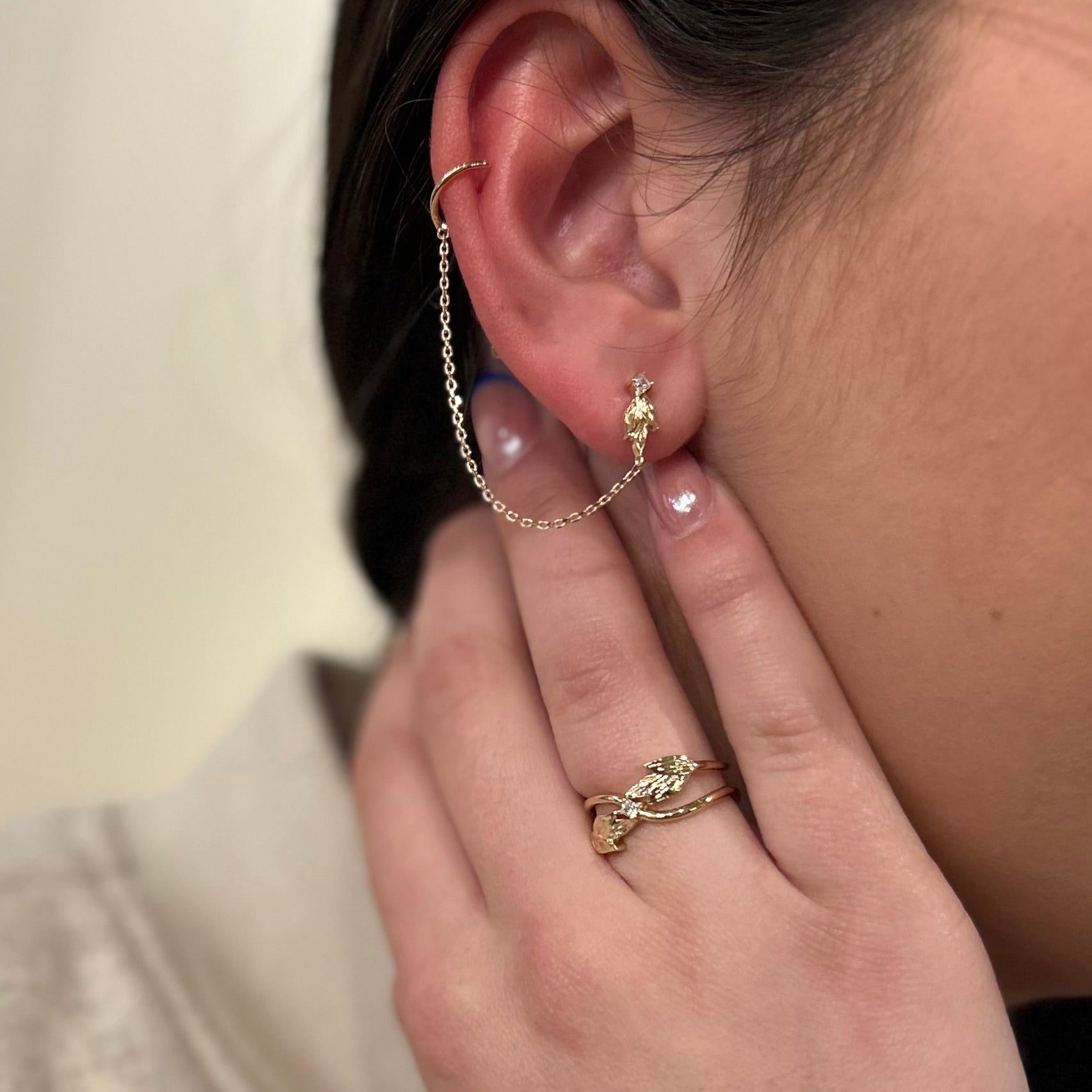 Mono boucle d'oreille feuille plaqué or 750 3mic et oxydes de zirconium