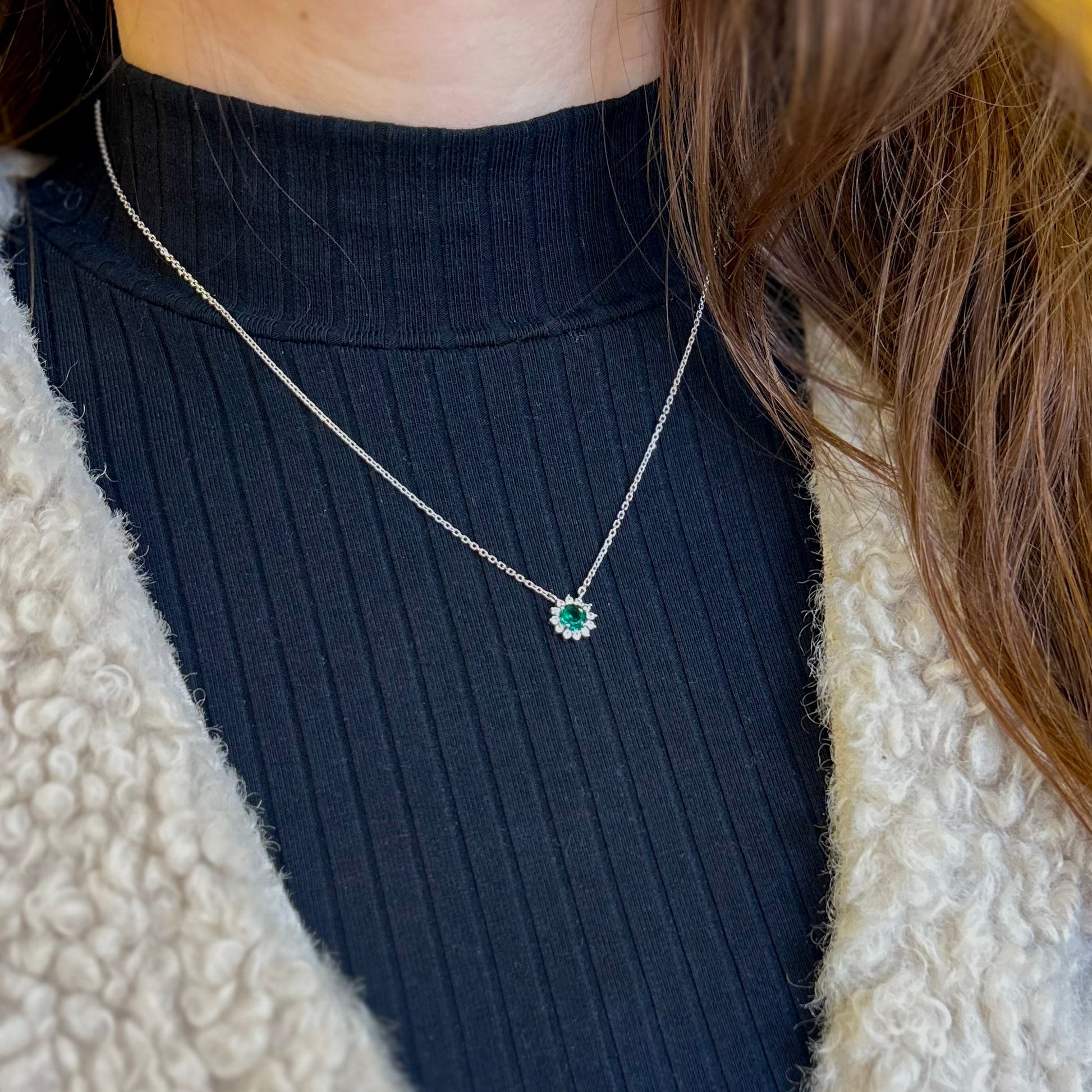 Bijou argent 925 rhodié, oxydes de zirconium et pierre de synthèse