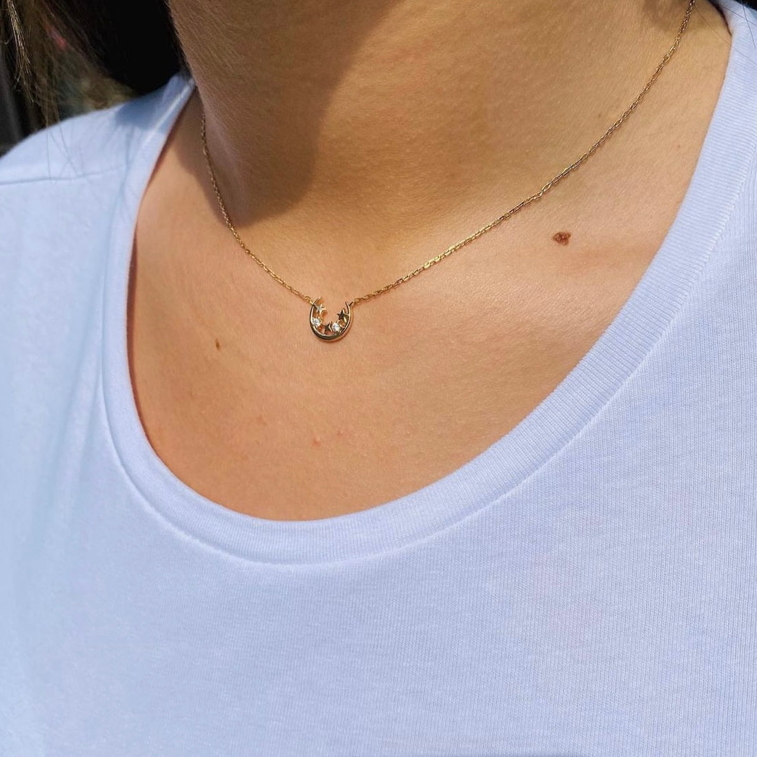 Bijou lune et étoile plaqué or 750 3mic et oxydes de zirconium